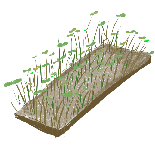 Quick "microgreen farming 101:" To get our microgreens, we load trays of soil with crowded seeds. Each tray contains a